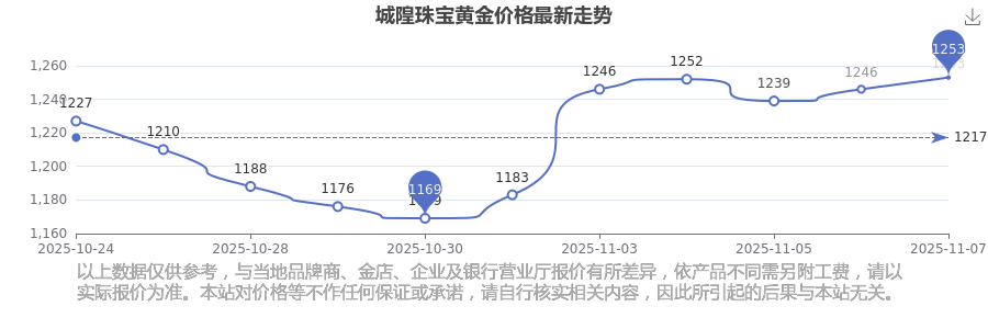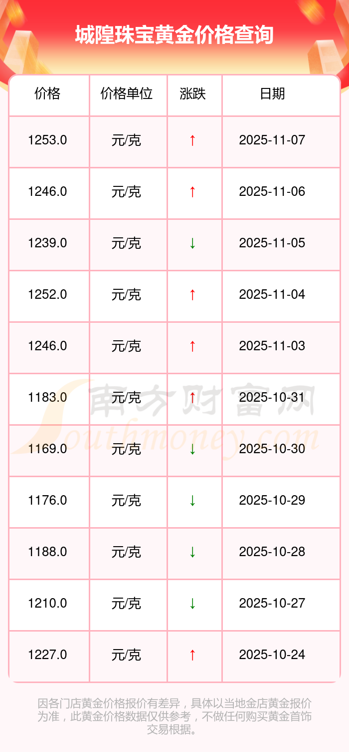 據(jù)了解,城隍珠寶今日黃金價格為1253.0元/克。