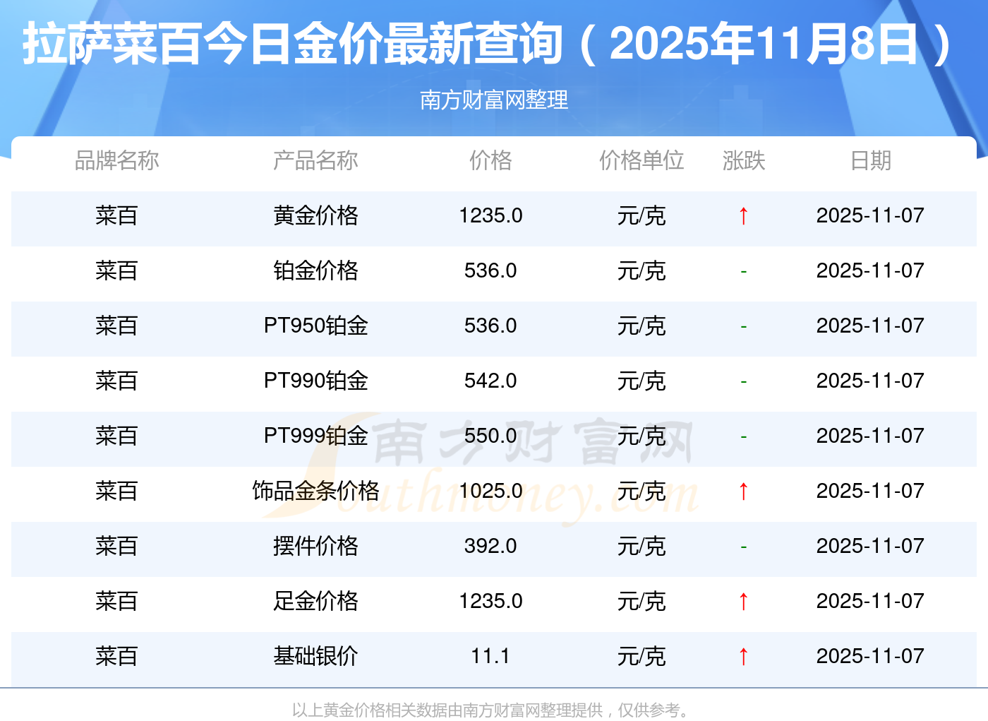 以上數(shù)據(jù)僅供參考,與當(dāng)?shù)仄放粕獭⒔鸬、企業(yè)及銀行營業(yè)廳報價有所差異,依產(chǎn)品不同需另附工費(fèi),請以實(shí)際報價為準(zhǔn)。本站對價格等不作任何保證或承諾,請自行核實(shí)相關(guān)內(nèi)容,因此所引起的后果與本站無關(guān)。