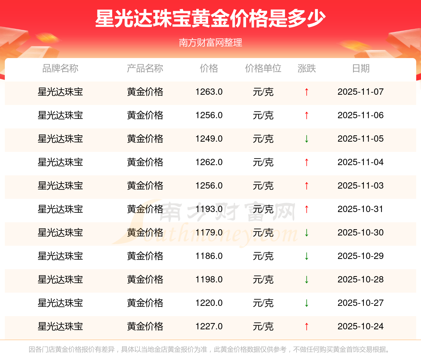 今日黃金價(jià)格查詢_現(xiàn)在金價(jià)黃金一克多少錢,黃金價(jià)格是多少錢一克?黃金屬于優(yōu)良的導(dǎo)電導(dǎo)熱材料,具備良好的導(dǎo)熱特性。由于化學(xué)穩(wěn)定性高、抗氧化性強(qiáng),可制作高精度電子元件,所以常被用在電子工業(yè)的特殊電路設(shè)計(jì)中。今日星光達(dá)珠寶 黃金價(jià)格,最新確定為1263.0元/克。