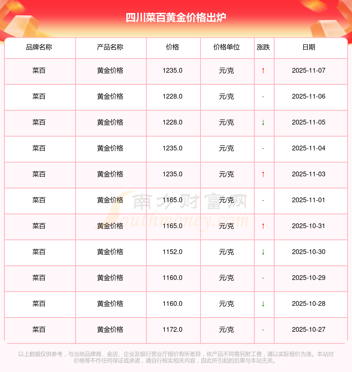 今日(2025年11月8日),1235.0元/克是四川菜百黃金價格的價格標準。
