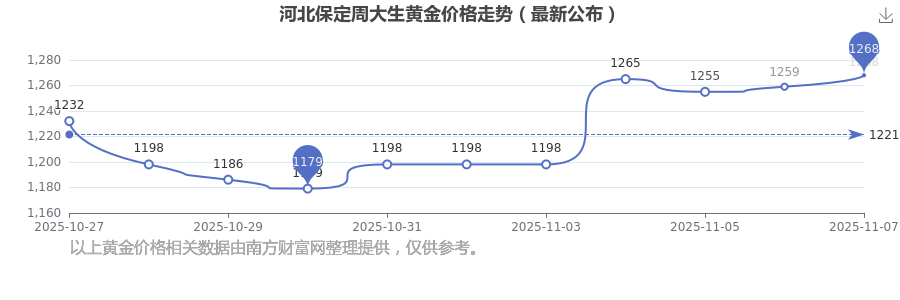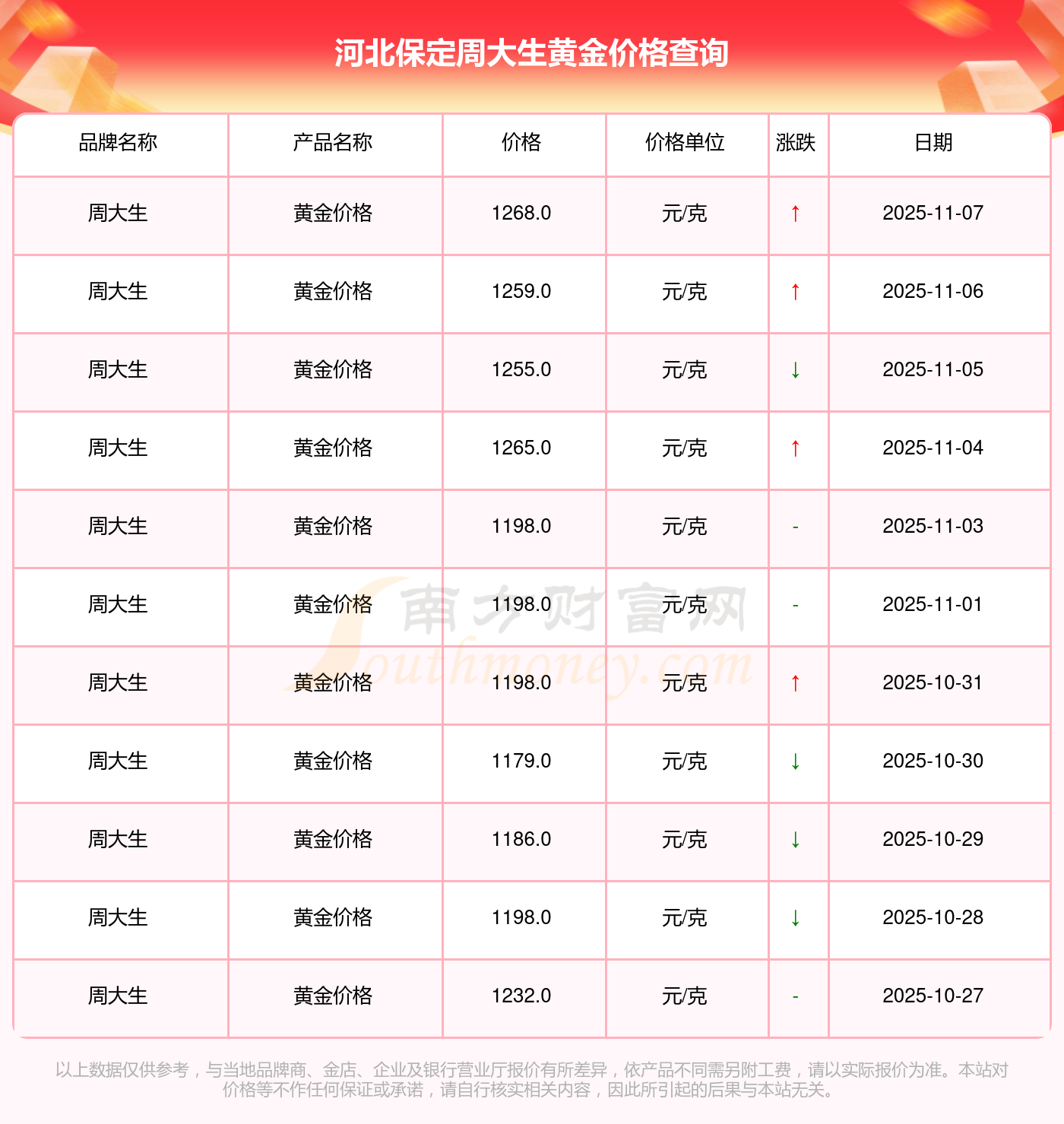 河北保定周大生現(xiàn)在黃金價(jià)格多少錢(qián)1克,此刻黃金一克的價(jià)格是多少?今日河北保定周大生黃金價(jià)格查詢,今日河北保定周大生黃金價(jià)格的價(jià)格為1268.0元/克。