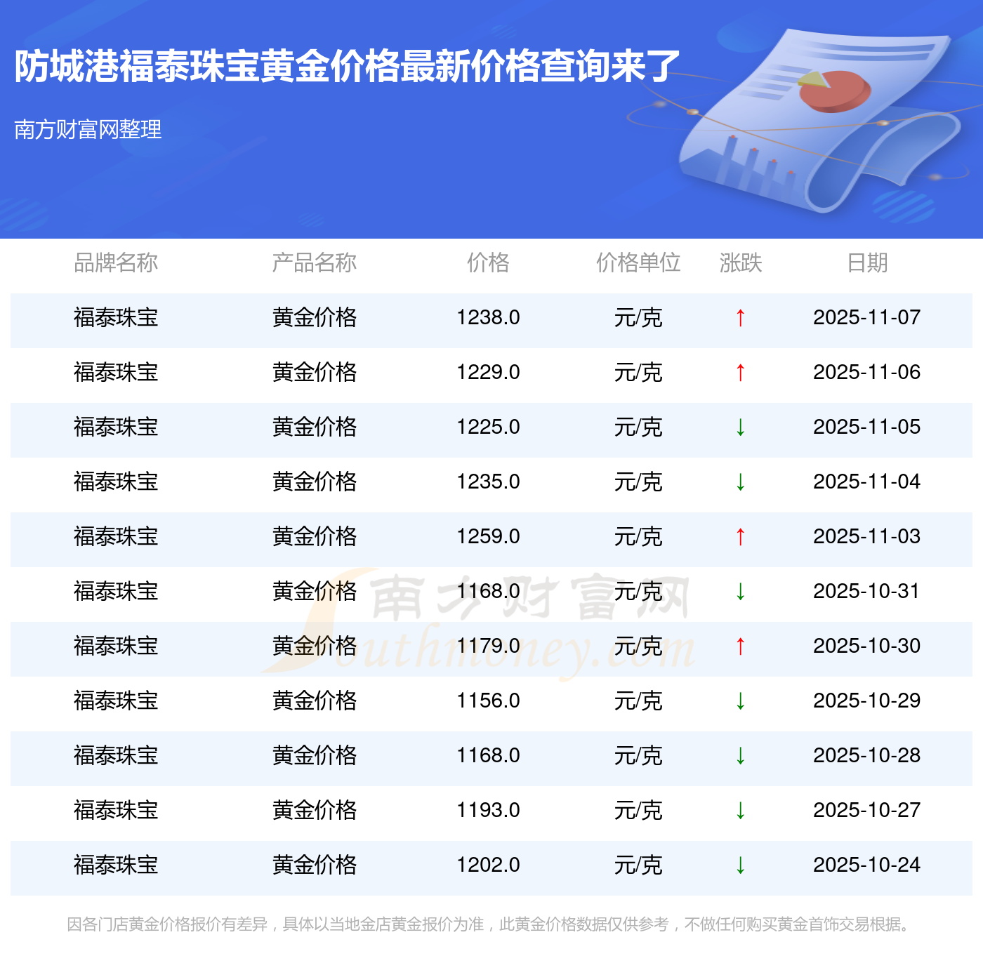 今日防城港福泰珠寶黃金價(jià)格是1238.0元/克。