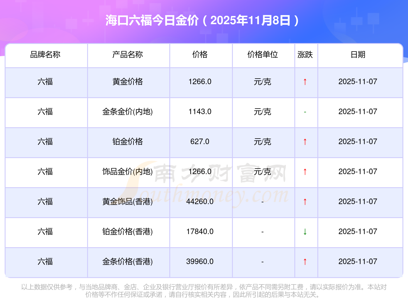 ?诹,現(xiàn)在一克黃金定價(jià)多少?銀條價(jià)格11.4元/克,黃金價(jià)格1263.0元/克,鉑金價(jià)格560.0元/克,金條價(jià)格(內(nèi)地)1202.0元/克,金飾價(jià)格(內(nèi)地)1268.0元/克,黃金飾品(香港)44260.0,鉑金飾品(香港)13080.0,金條金價(jià)(香港)39960.0,投資金條1243.0元/克,工藝金條1258.0元/克,千足金首飾1248.0元/克。