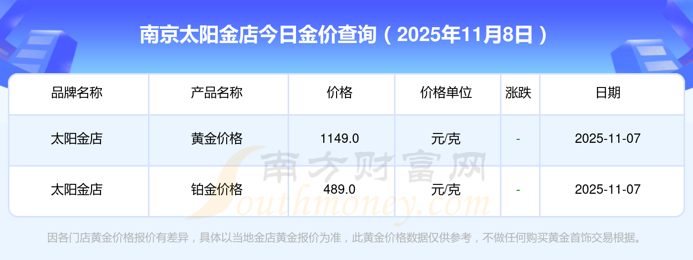 今日金價(jià)多少一克_2025年11月8日南京太陽(yáng)金店黃金價(jià)格查詢表來(lái)了,隨小編來(lái)了解一下詳情。