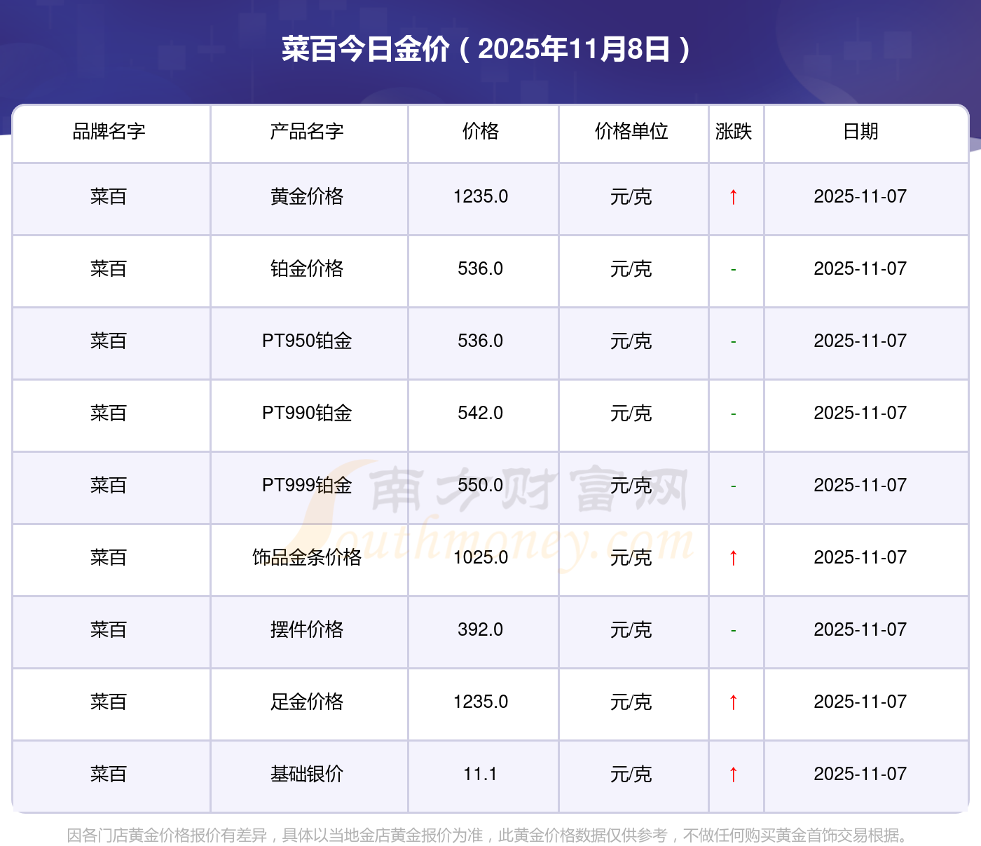 2025年11月8日菜百今日黃金價格查詢(一克金子的市場價格查詢),一起來看看吧!