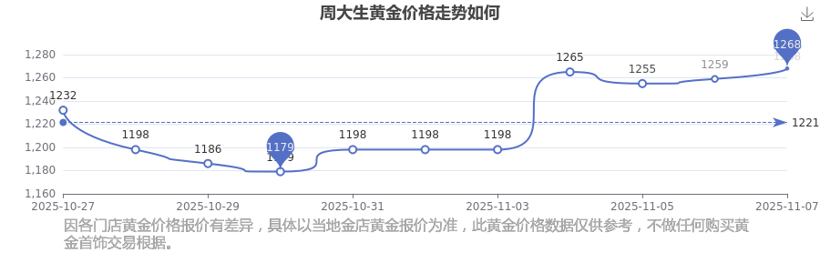 今天黃金價位怎樣呢?現(xiàn)在每克黃金賣多少錢?黃金是一種優(yōu)良的導(dǎo)電導(dǎo)熱材料,具有良好的導(dǎo)熱特性。黃金常用于電子工業(yè)中的特殊電路設(shè)計,因其化學(xué)穩(wěn)定性高、抗氧化性強(qiáng),可制作高精度電子元件。今日周大生黃金價格:1268.0元/克。