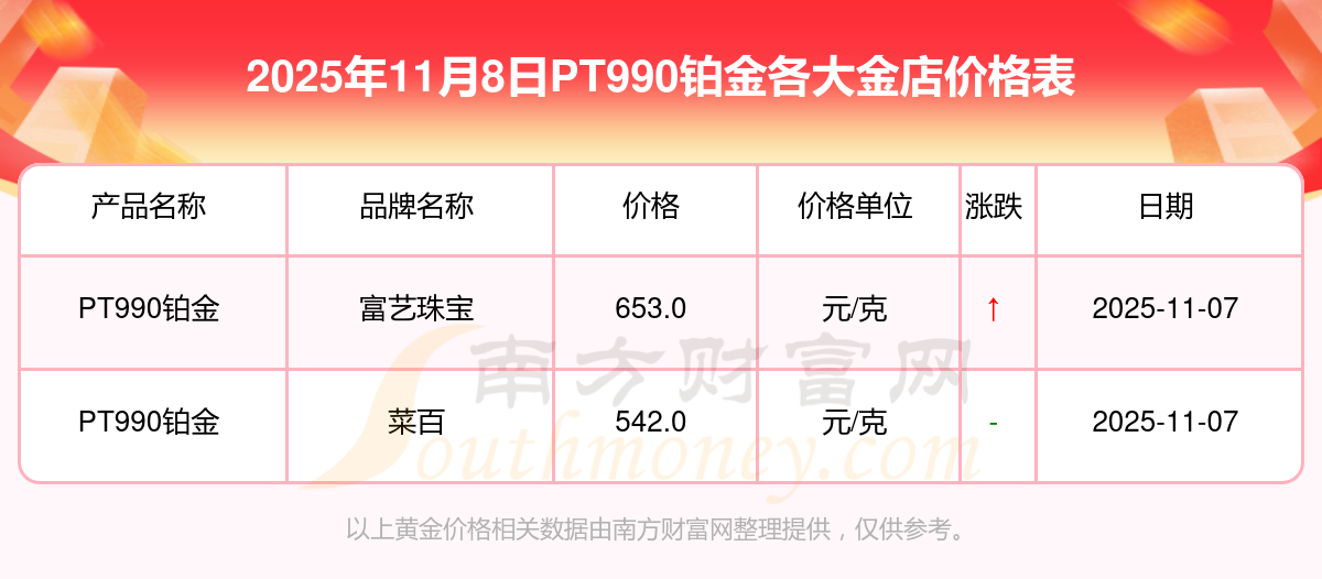 各金店P(guān)T990鉑金價格一覽表,PT990鉑金價格最新公布