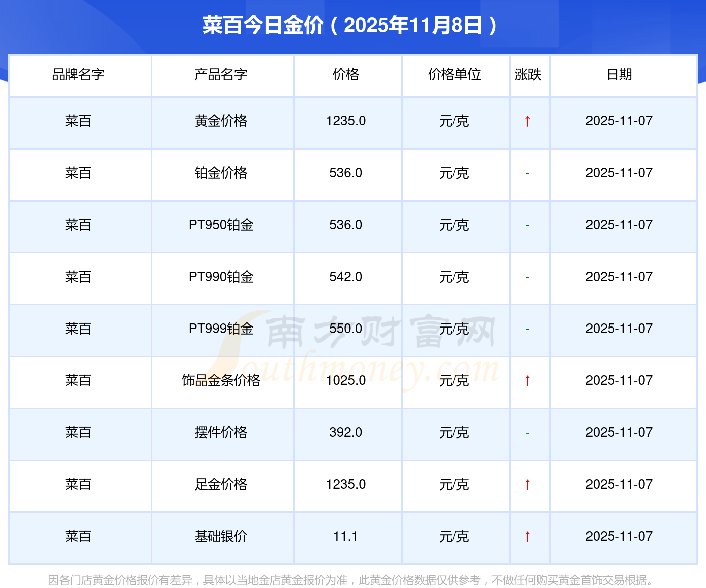 以上數(shù)據(jù)僅供參考,與當(dāng)?shù)亟鸬暧兴町,?qǐng)以實(shí)際價(jià)格為準(zhǔn)。
