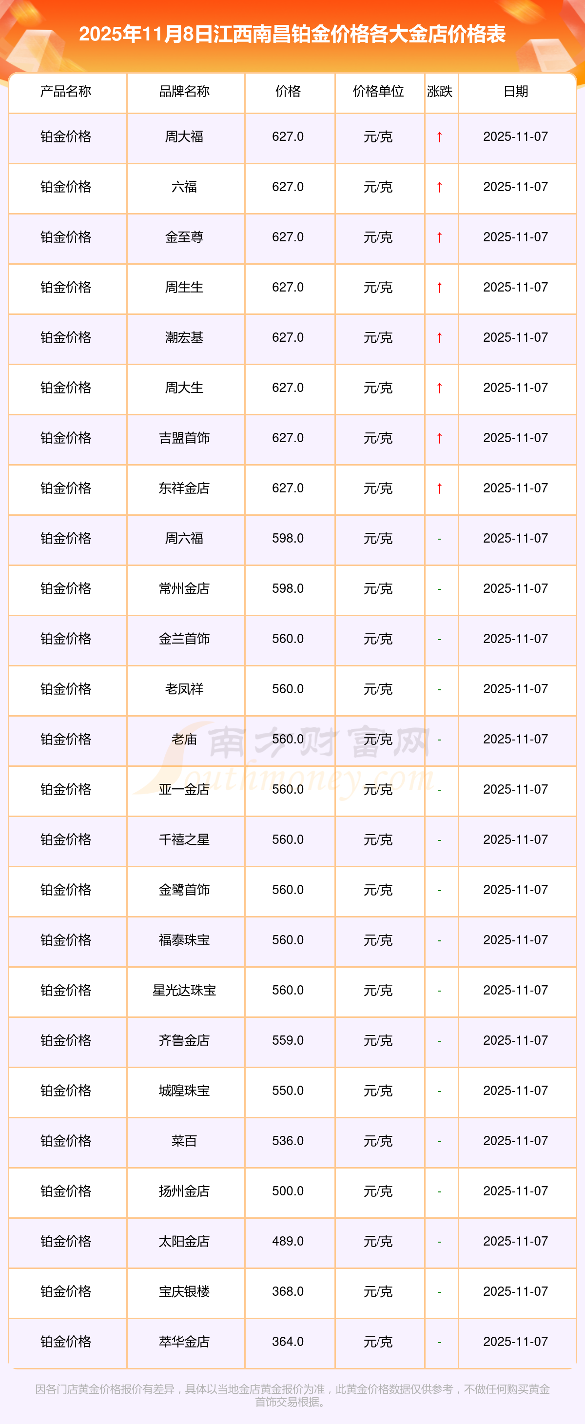 一、 江西南昌各金店鉑金價格多少錢1克?江西南昌各金店鉑金價格最新詳情