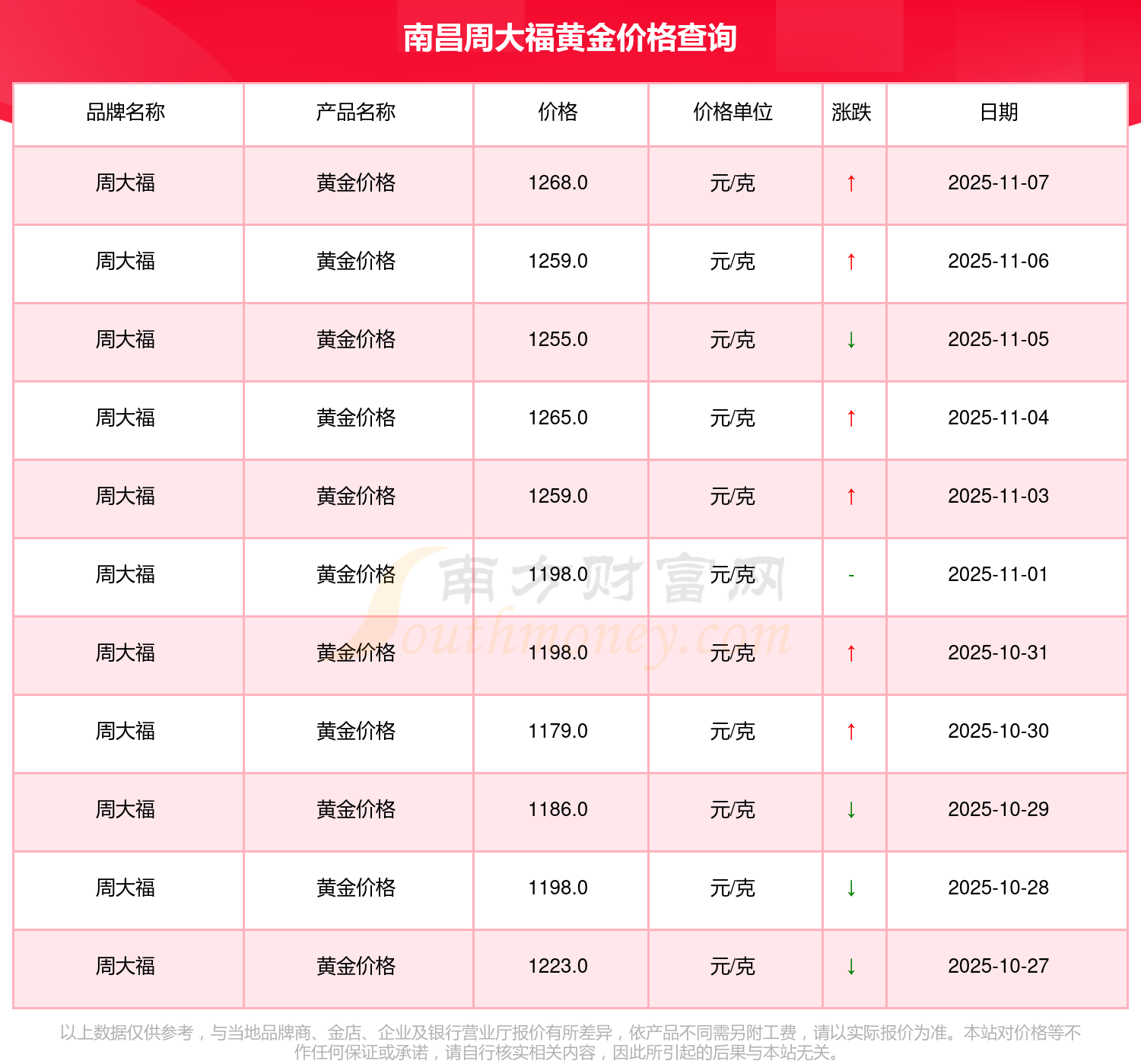 今日南昌周大福黃金價(jià)格最新為:1268.0元/克。