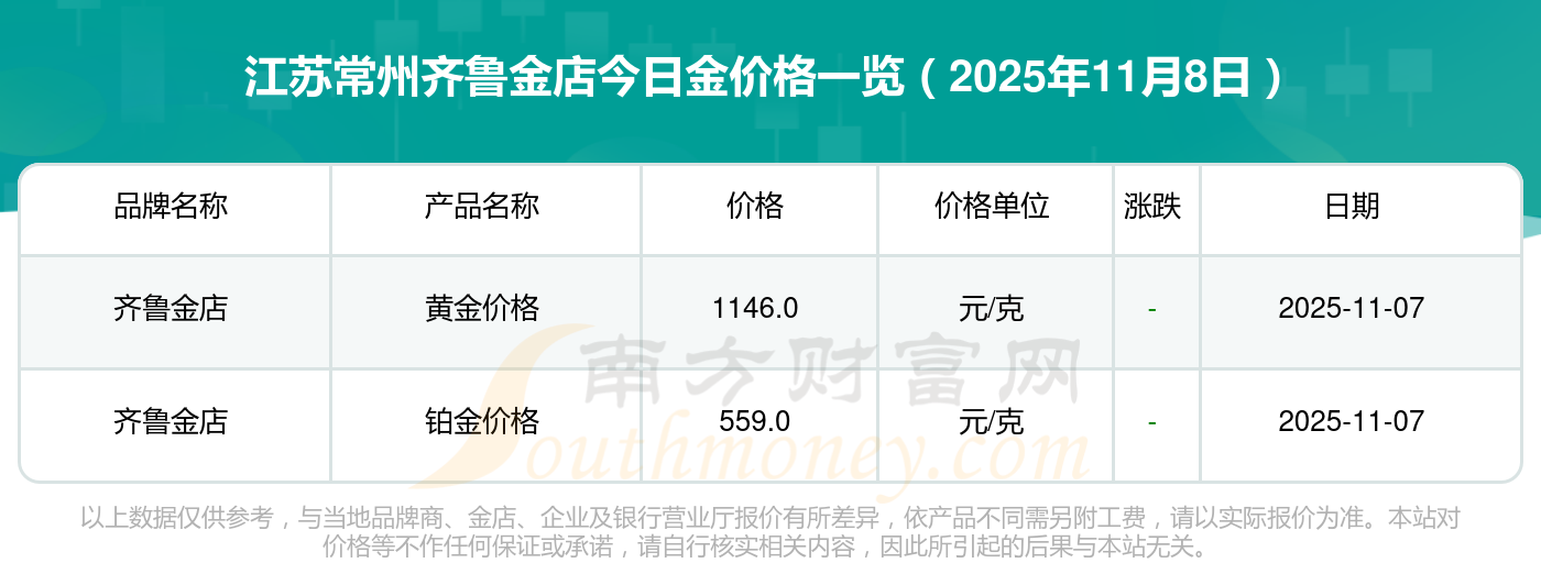2025年11月8日江蘇常州齊魯金店現(xiàn)在購買一克黃金需要支付多少錢?銀條價格11.4元/克,黃金價格1263.0元/克,鉑金價格560.0元/克,金條價格(內(nèi)地)1202.0元/克,金飾價格(內(nèi)地)1268.0元/克,黃金飾品(香港)44260.0,鉑金飾品(香港)13080.0,金條金價(香港)39960.0,投資金條1243.0元/克,工藝金條1258.0元/克,千足金首飾1248.0元/克。