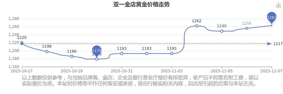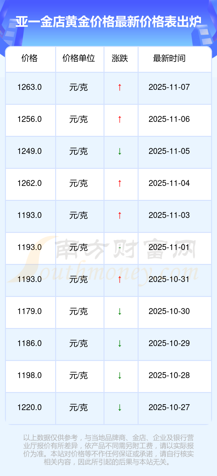 想查詢當(dāng)下黃金價(jià)格,今日黃金一克的價(jià)格是多少呢?黃金每克的價(jià)位一般在什么水平呢?1263.0元/克是亞一金店在今日給出的 黃金價(jià)格最新價(jià)格。