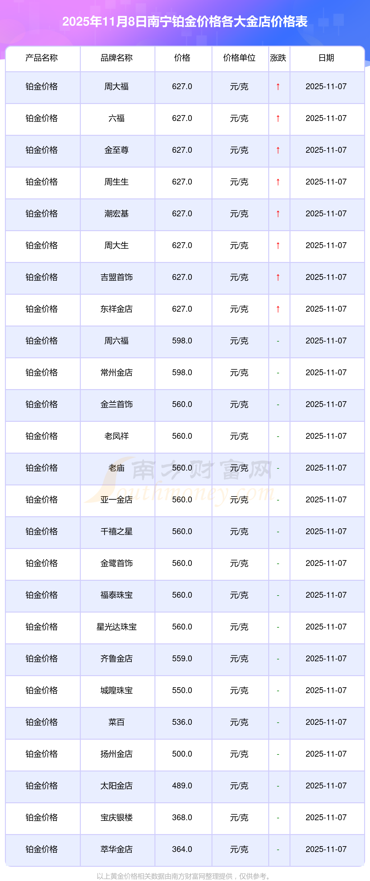 一、 南寧各金店鉑金價格多少錢1克?南寧各金店鉑金價格最新詳情