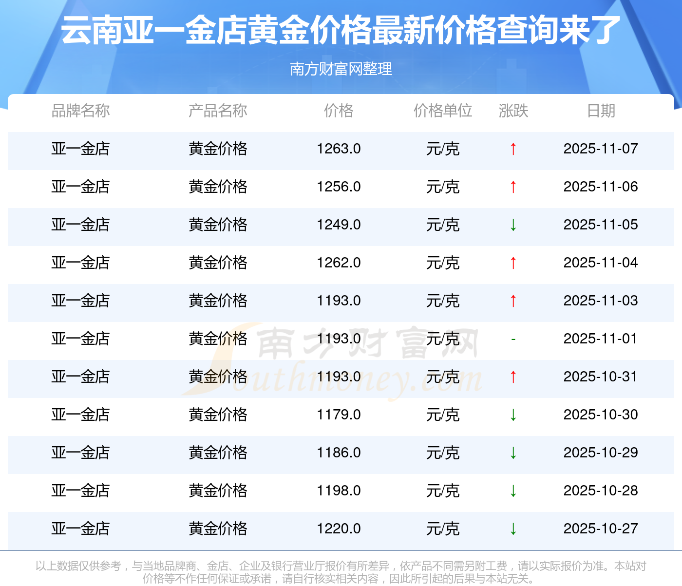 2025年11月8日,寶泉錢幣、金蘭首飾、金蘭首飾、謝瑞麟、謝瑞麟、謝瑞麟、謝瑞麟、謝瑞麟、金銀街、金銀街、金銀街等各大金店品牌黃金價(jià)格今日價(jià)格如下:寶泉錢幣11.4元/克、金蘭首飾1263.0元/克、金蘭首飾560.0元/克、謝瑞麟1202.0元/克、謝瑞麟1268.0元/克、謝瑞麟44260.0、謝瑞麟13080.0、謝瑞麟39960.0、金銀街1243.0元/克、金銀街1258.0元/克、金銀街1248.0元/克。
