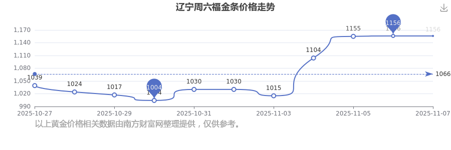 1156.0元/克,此乃遼寧周六福于 2025年11月8日金條價(jià)格的掛牌價(jià)格。