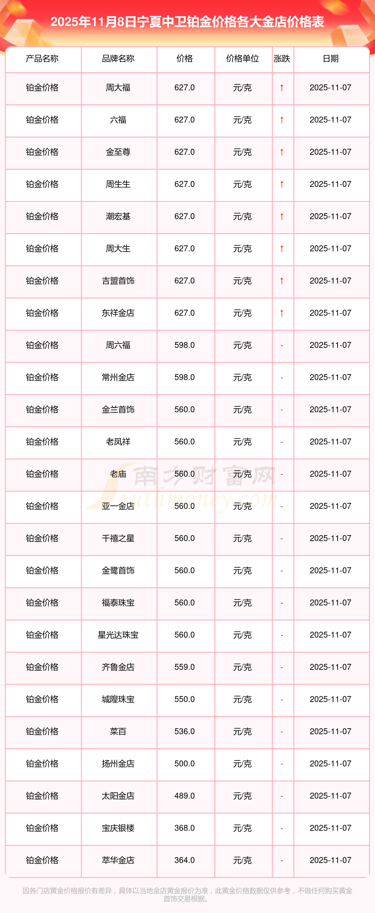 一、 寧夏中衛(wèi)各金店鉑金價格多少錢1克?寧夏中衛(wèi)各金店鉑金價格最新詳情