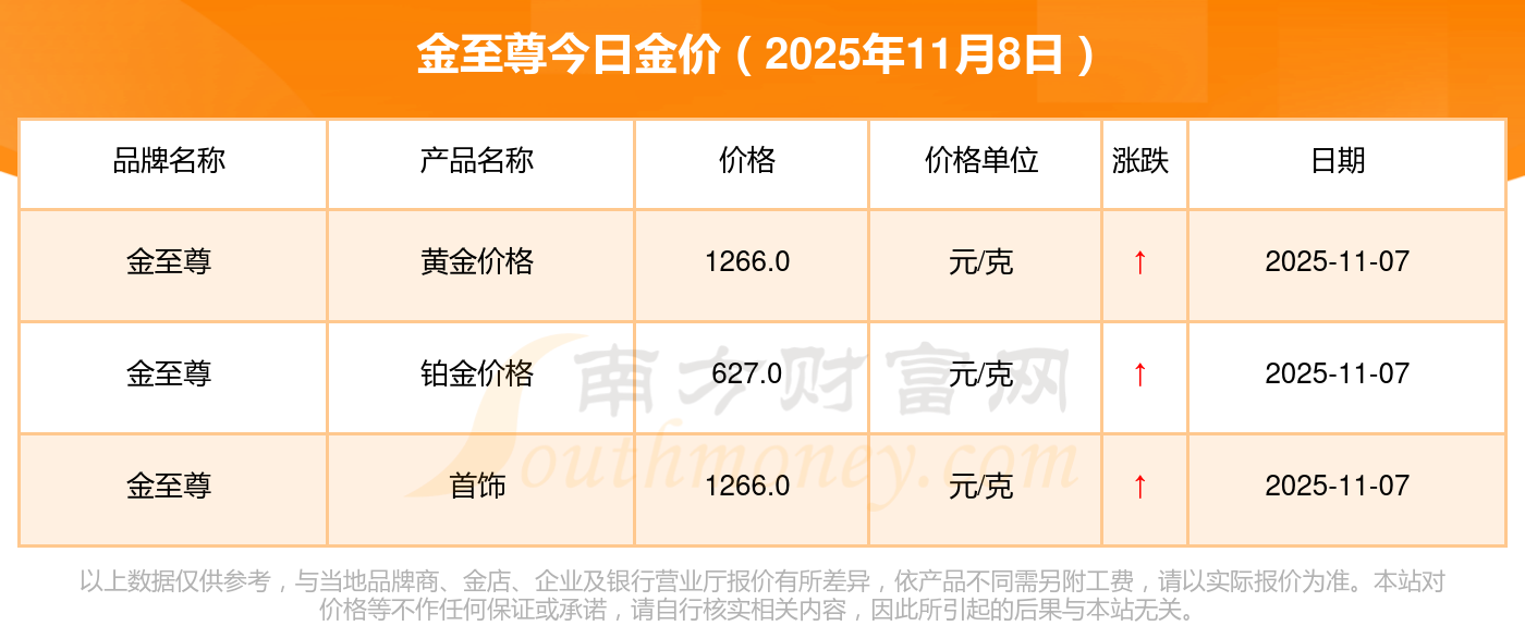 金至尊今天的黃金價(jià)值幾何?詳情如下: