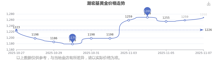 想查詢當(dāng)下黃金價(jià)格,今日黃金一克的價(jià)格是多少呢?黃金每克的價(jià)錢通常來(lái)說(shuō)是多少左右?1268.0元/克的價(jià)格,是潮宏基今日 黃金價(jià)格的最新行情。