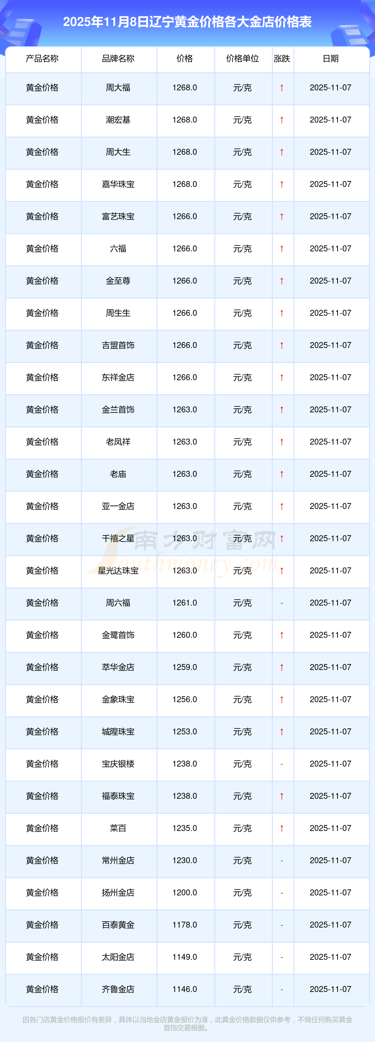 今天黃金價(jià)格查詢最新,2025年11月8日遼寧各大金店黃金價(jià)格表來了
