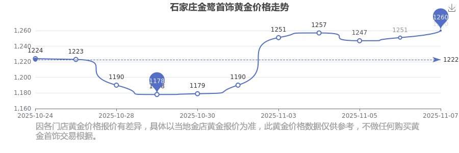 1260.0元/克,此乃石家莊金鷺首飾于 2025年11月8日黃金價(jià)格的掛牌價(jià)格。