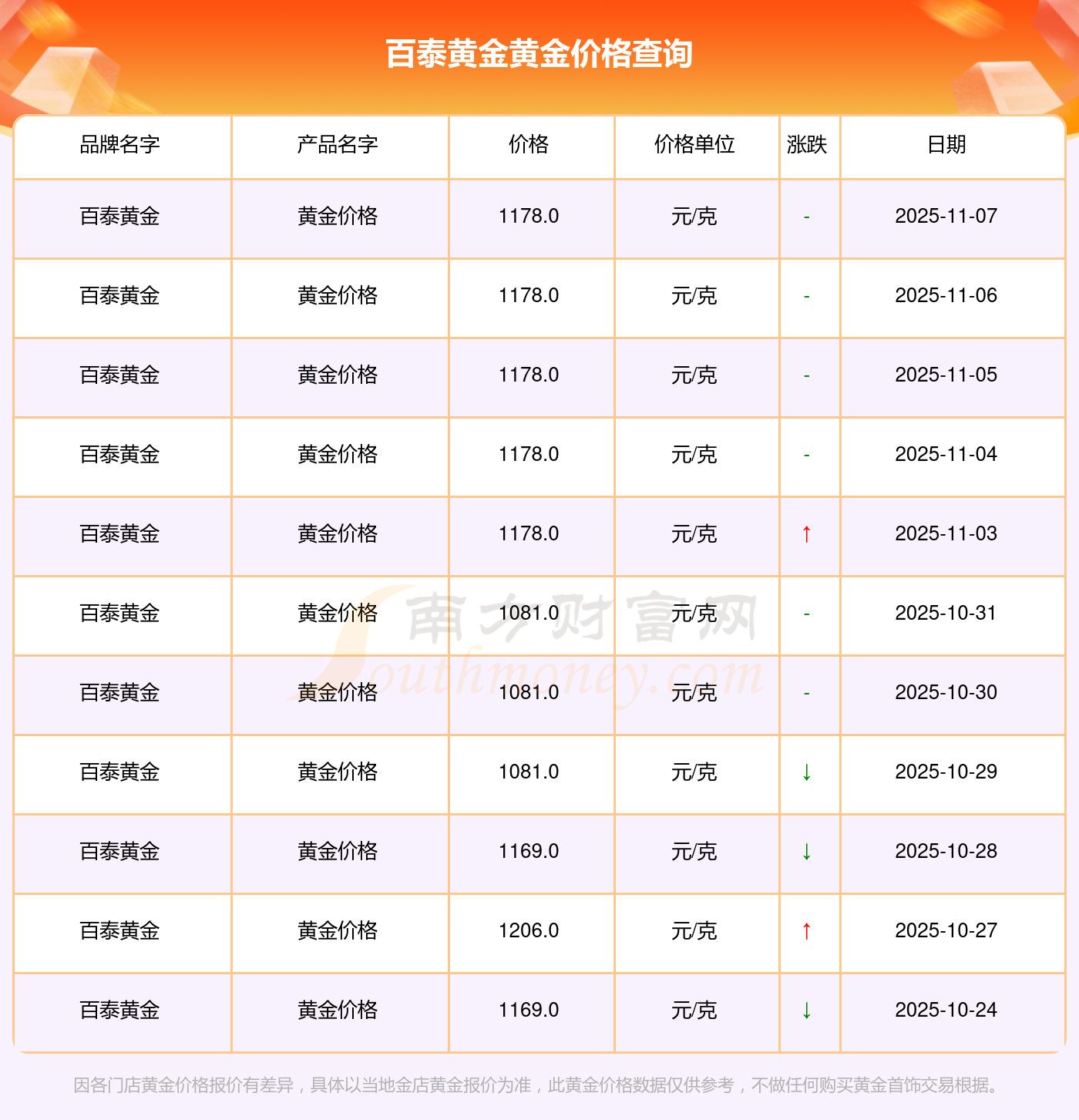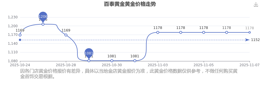 1178.0元/克是百泰黃金在今日給出的 黃金價(jià)格最新價(jià)格。