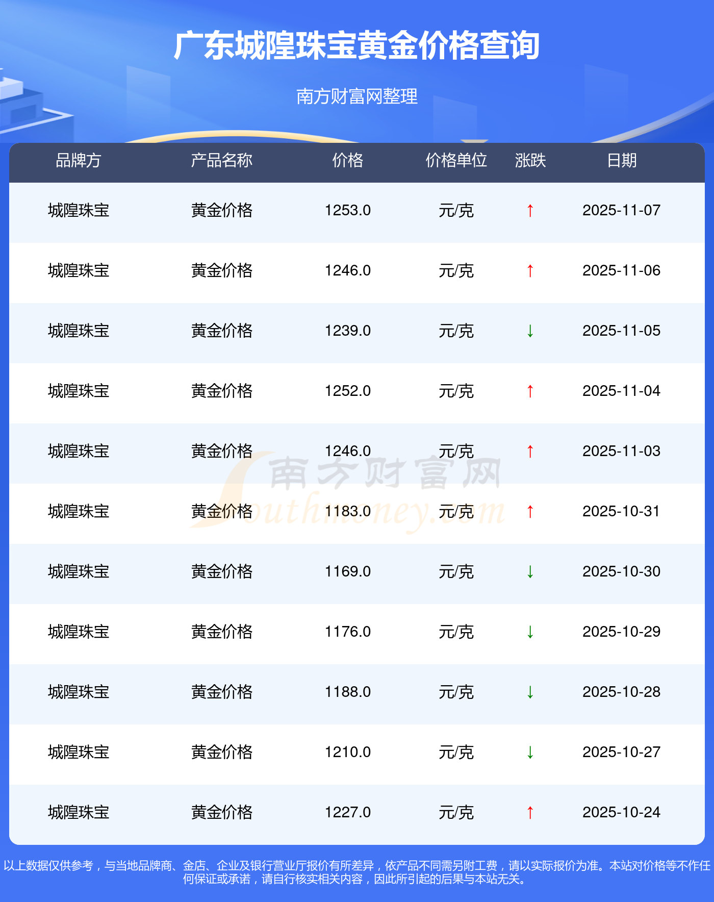 2025年11月8日各大金店黃金價(jià)格最新價(jià)格:寶泉錢幣11.4元/克,金蘭首飾1263.0元/克,金蘭首飾560.0元/克,謝瑞麟1202.0元/克,謝瑞麟1268.0元/克,謝瑞麟44260.0,謝瑞麟13080.0,謝瑞麟39960.0,金銀街1243.0元/克,金銀街1258.0元/克,金銀街1248.0元/克。
