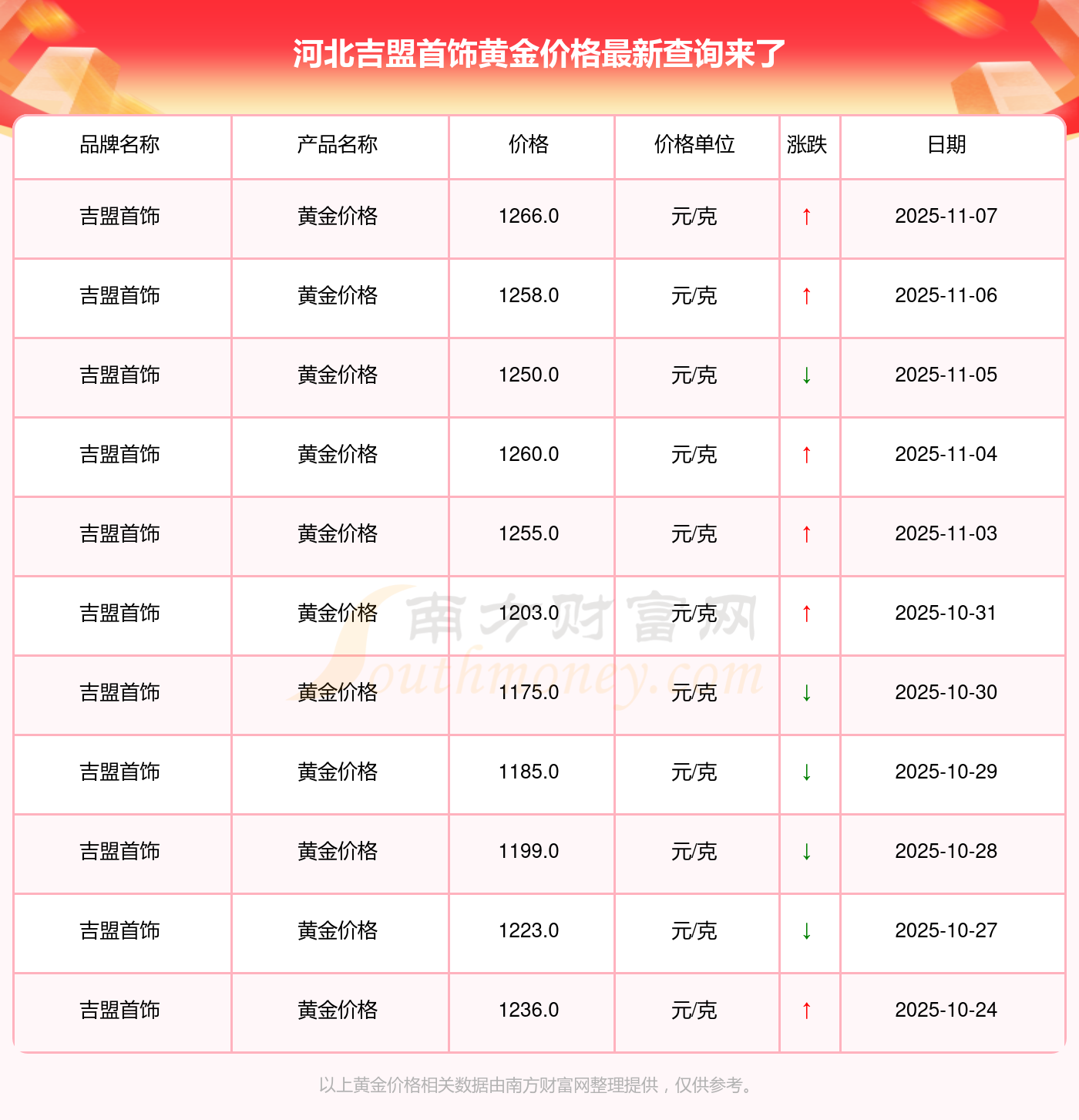 今日河北吉盟首飾黃金價格公布今日黃金每克交易的價格為多少今日河北吉盟首飾黃金價格的價格為1266.0元/克。