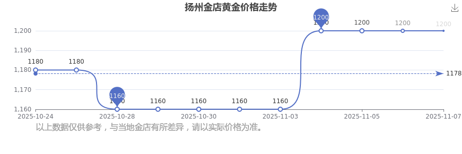 今日揚(yáng)州金店 黃金價(jià)格,最新確定為1200.0元/克。