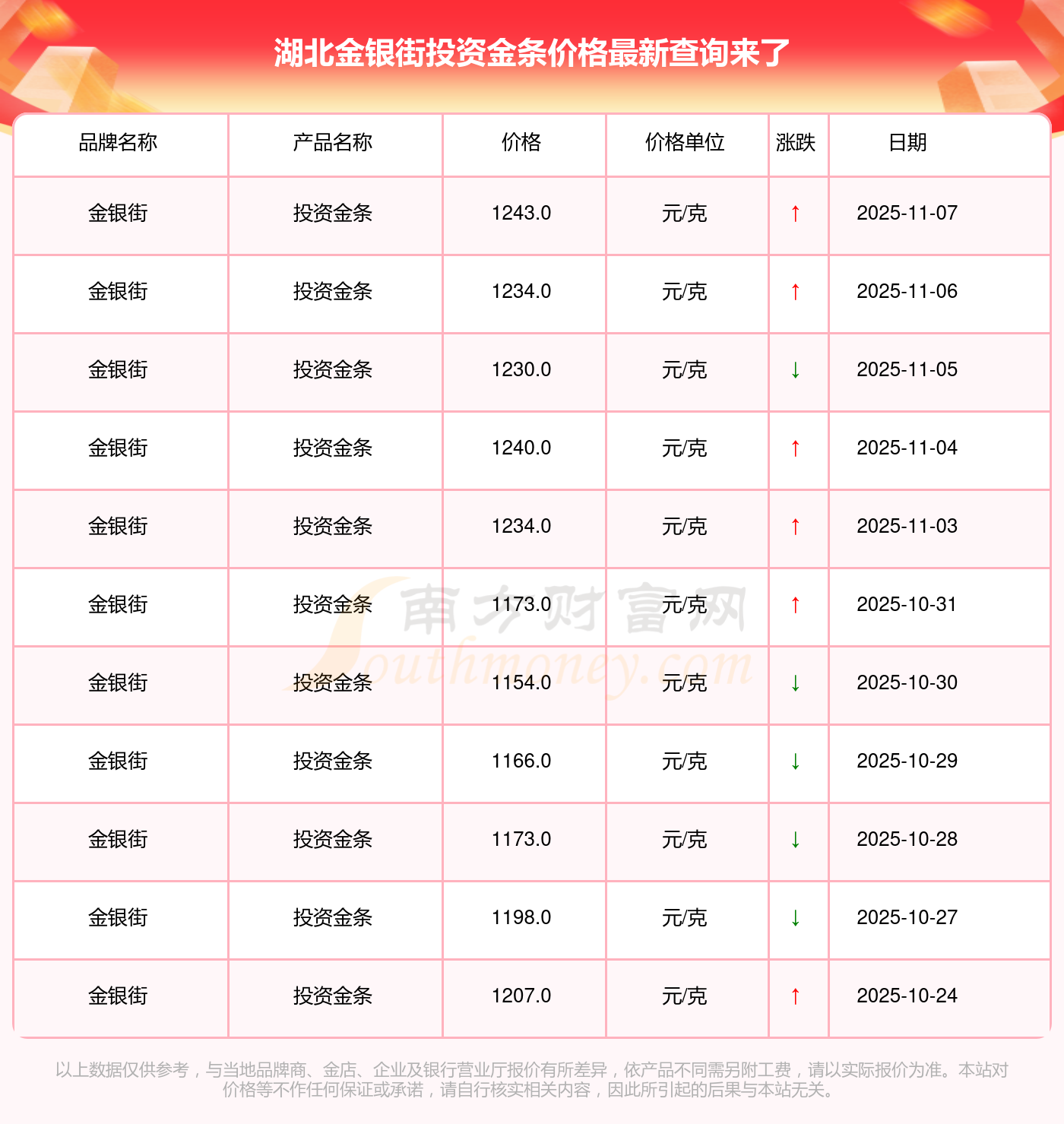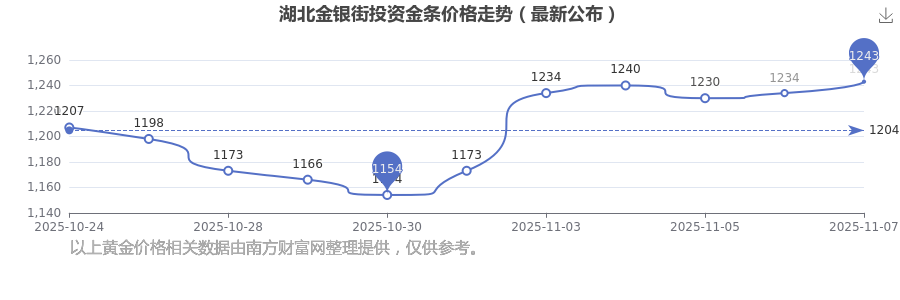 1243.0元/克,這是湖北金銀街于 2025年11月8日所定的投資金條價(jià)格。