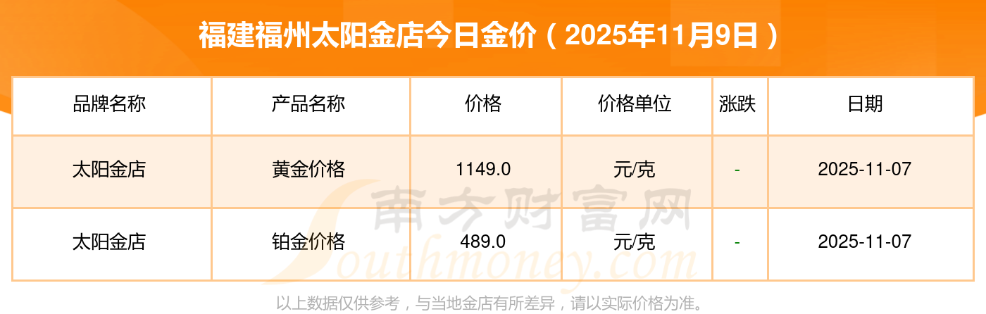福建福州太陽(yáng)金店黃金價(jià)格最新公布_今日金價(jià)多少一克,隨小編來(lái)了解一下詳情。