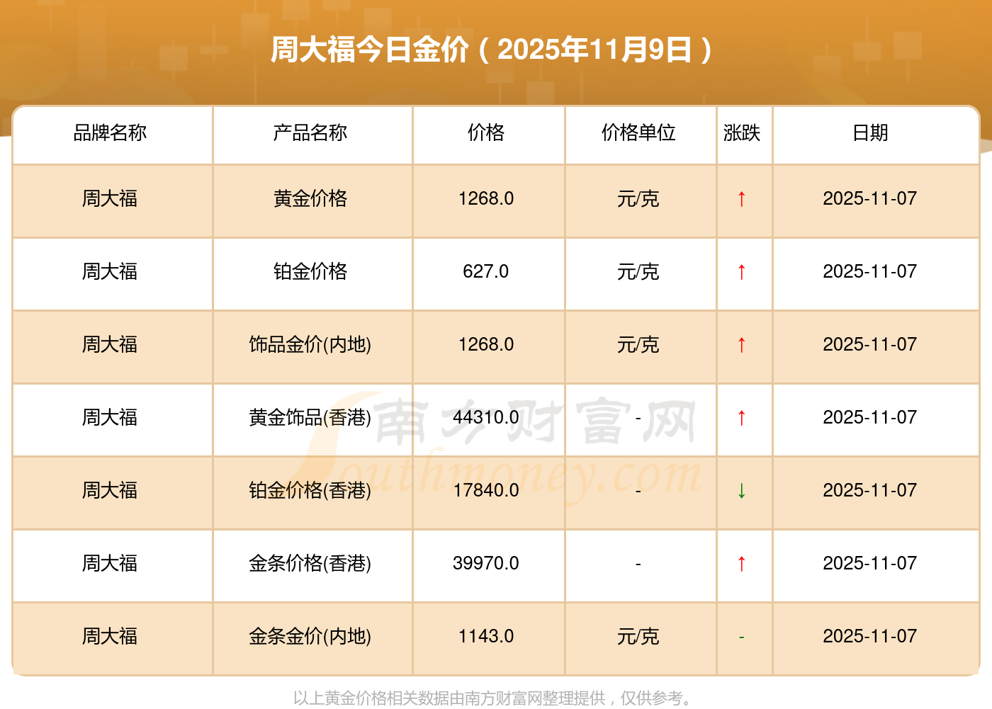以上黃金價格相關數(shù)據(jù)由南方財富網整理提供,僅供參考。