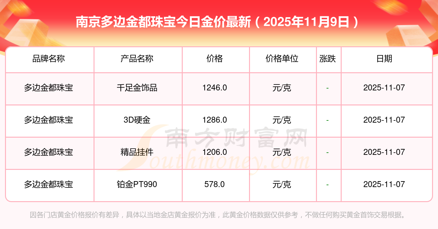 南京最新多邊金都珠寶今日金價(jià)多少錢一克?(2025年11月9日)