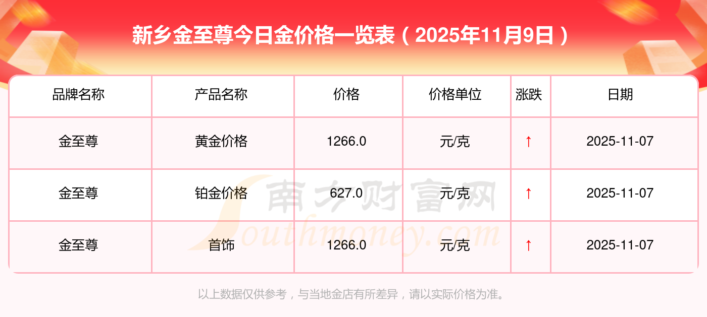 今日黃金價格查詢_現(xiàn)在金價黃金一克多少錢,黃金價格是多少錢一克? 2025年11月9日新鄉(xiāng)金至尊金價查詢:銀條價格11.4元/克,黃金價格1263.0元/克,鉑金價格560.0元/克,金條價格(內(nèi)地)1202.0元/克,金飾價格(內(nèi)地)1268.0元/克,黃金飾品(香港)44260.0,鉑金飾品(香港)13080.0,金條金價(香港)39960.0,投資金條1243.0元/克,工藝金條1258.0元/克,千足金首飾1248.0元/克。