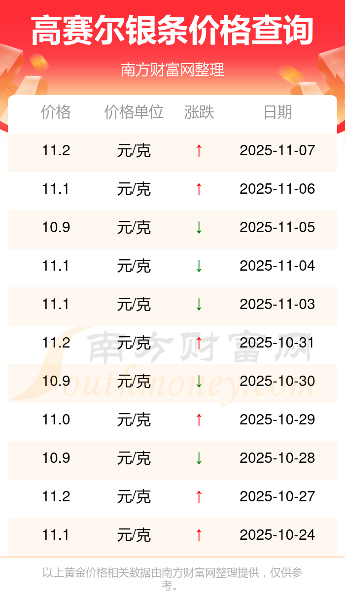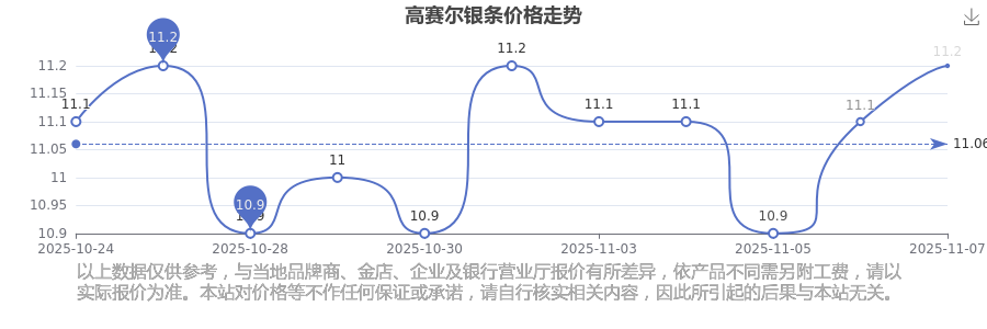 今日高賽爾銀條價格最新是11.2元/克。