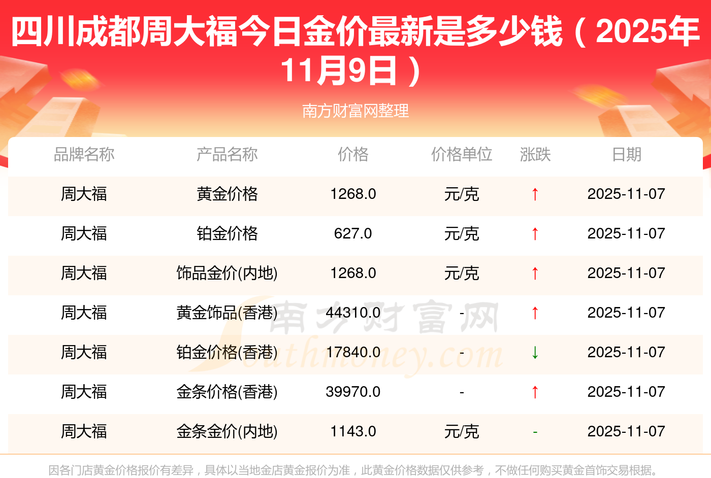 黃金收益是怎么計(jì)算?2025年四川成都周大福黃金價(jià)格實(shí)時(shí)查詢,詳情如下: