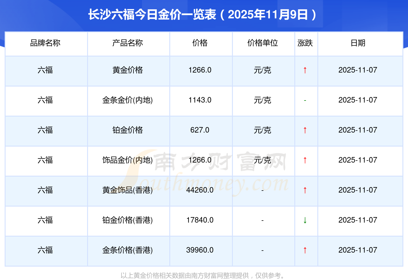 長沙六福金價今日價格最新_長沙六福黃金多少錢一克2025年11月9日,隨小編來了解一下詳情。