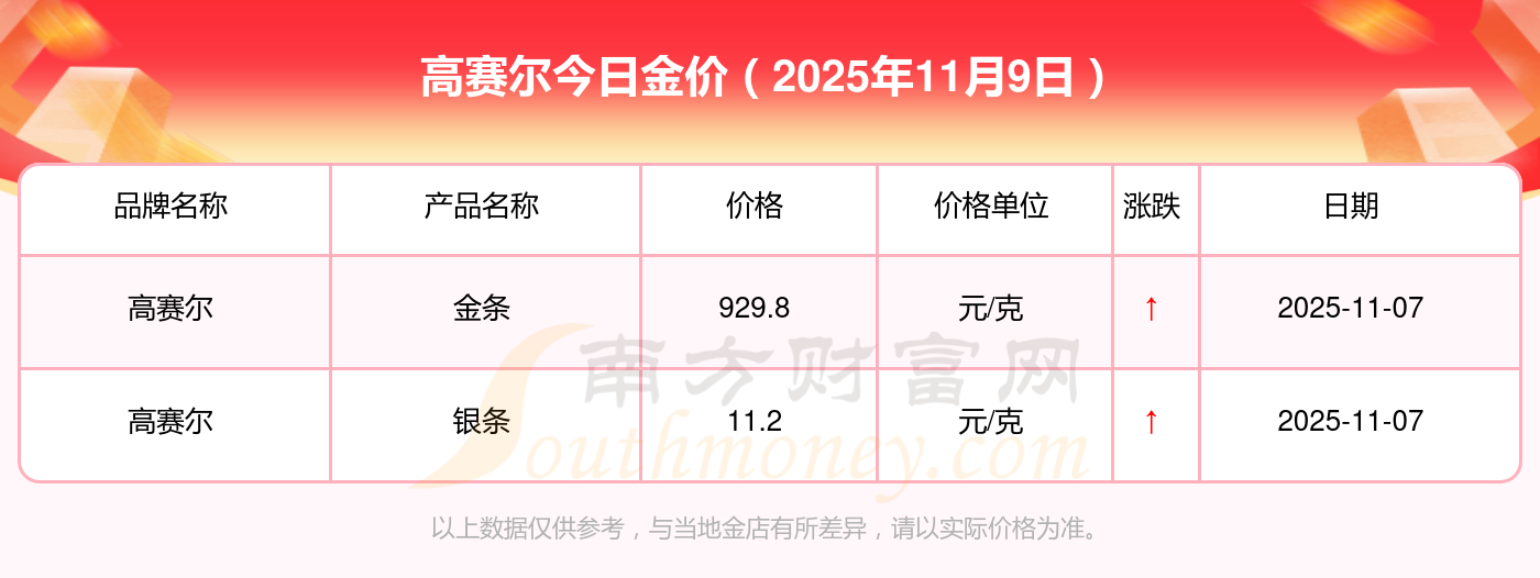 以上數(shù)據(jù)僅供參考,與當(dāng)?shù)亟鸬暧兴町,?qǐng)以實(shí)際價(jià)格為準(zhǔn)。
