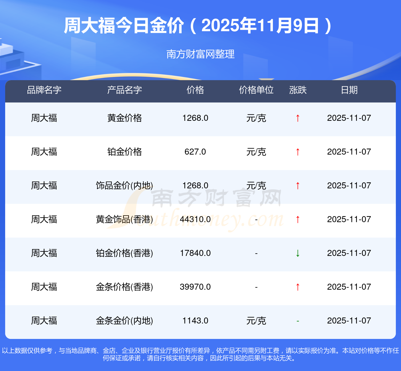 今天是2025年11月9日,寶泉錢(qián)幣、金蘭首飾、金蘭首飾、謝瑞麟、謝瑞麟、謝瑞麟、謝瑞麟、謝瑞麟、金銀街、金銀街、金銀街等各大金店品牌鉑金價(jià)格最新價(jià)格如下:寶泉錢(qián)幣11.4元/克、金蘭首飾1263.0元/克、金蘭首飾560.0元/克、謝瑞麟1202.0元/克、謝瑞麟1268.0元/克、謝瑞麟44260.0、謝瑞麟13080.0、謝瑞麟39960.0、金銀街1243.0元/克、金銀街1258.0元/克、金銀街1248.0元/克。