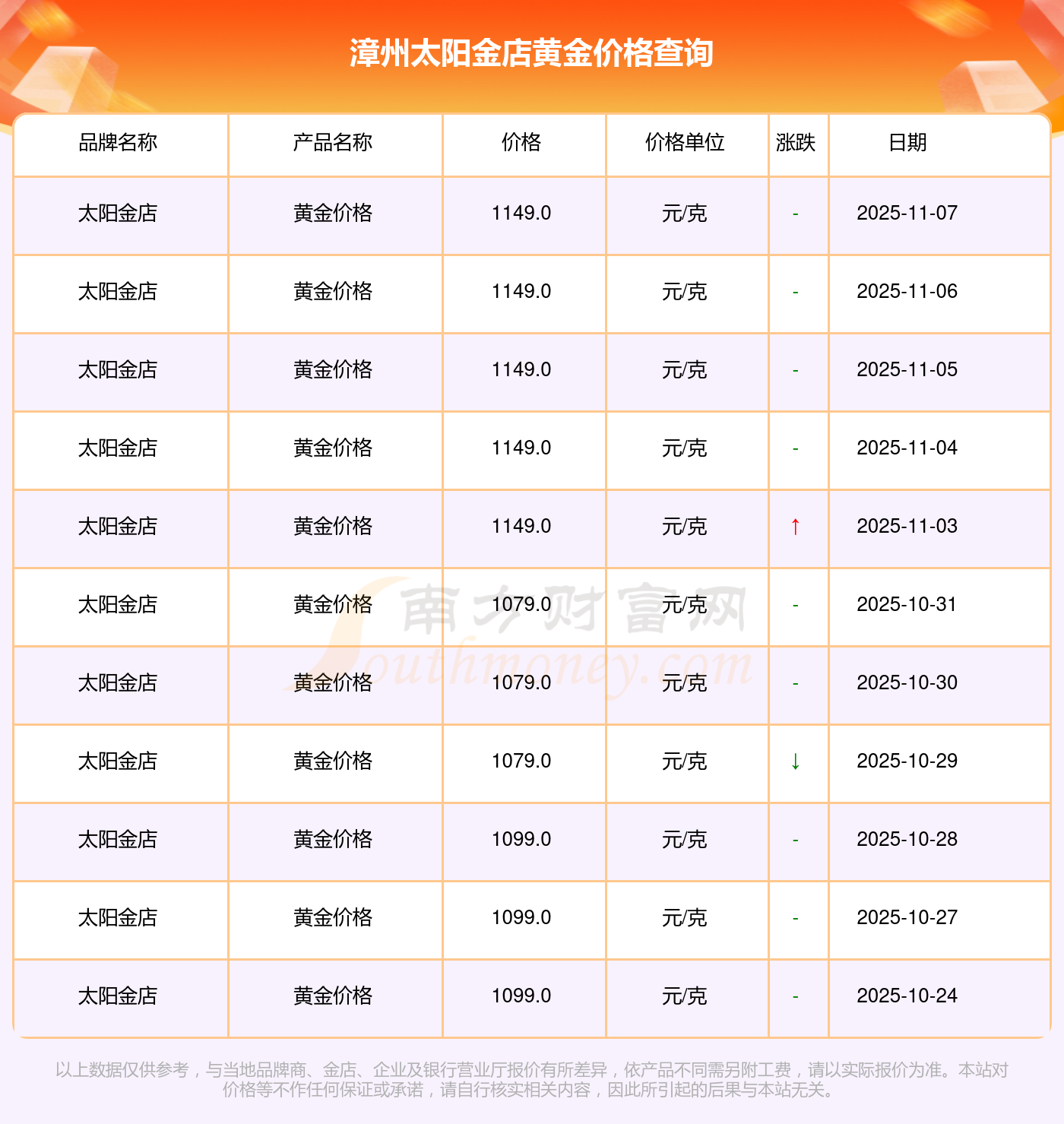2025年11月9日寶泉錢幣、金蘭首飾、金蘭首飾、謝瑞麟、謝瑞麟、謝瑞麟、謝瑞麟、謝瑞麟、金銀街、金銀街、金銀街等各大金店品牌黃金價格最新價格如下:寶泉錢幣銀條價格11.4元/克,金蘭首飾黃金價格1263.0元/克,金蘭首飾鉑金價格560.0元/克,謝瑞麟金條價格(內(nèi)地)1202.0元/克,謝瑞麟金飾價格(內(nèi)地)1268.0元/克,謝瑞麟黃金飾品(香港)44260.0,謝瑞麟鉑金飾品(香港)13080.0,謝瑞麟金條金價(香港)39960.0,金銀街投資金條1243.0元/克,金銀街工藝金條1258.0元/克,金銀街千足金首飾1248.0元/克。