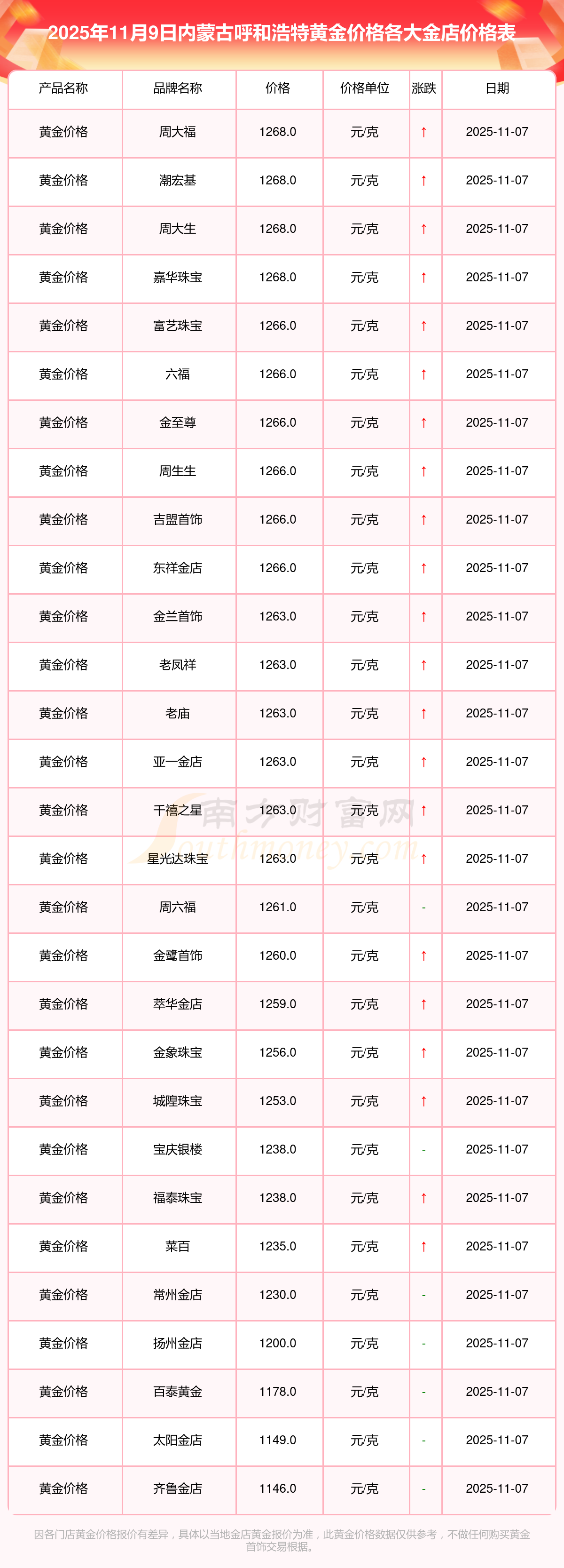 一、 內(nèi)蒙古呼和浩特各金店黃金價(jià)格多少錢1克??jī)?nèi)蒙古呼和浩特各金店黃金價(jià)格最新詳情