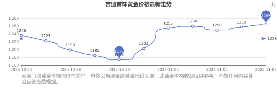 今日黃金價(jià)格具體是多少?現(xiàn)在一克黃金賣多少錢?黃金是一種優(yōu)良的導(dǎo)電導(dǎo)熱材料,有著良好的導(dǎo)熱特性。它常用于電子工業(yè)中的特殊電路設(shè)計(jì),這得益于其化學(xué)穩(wěn)定性高、抗氧化性強(qiáng),可制作高精度電子元件。今日吉盟首飾黃金價(jià)格最新為1266.0元/克。