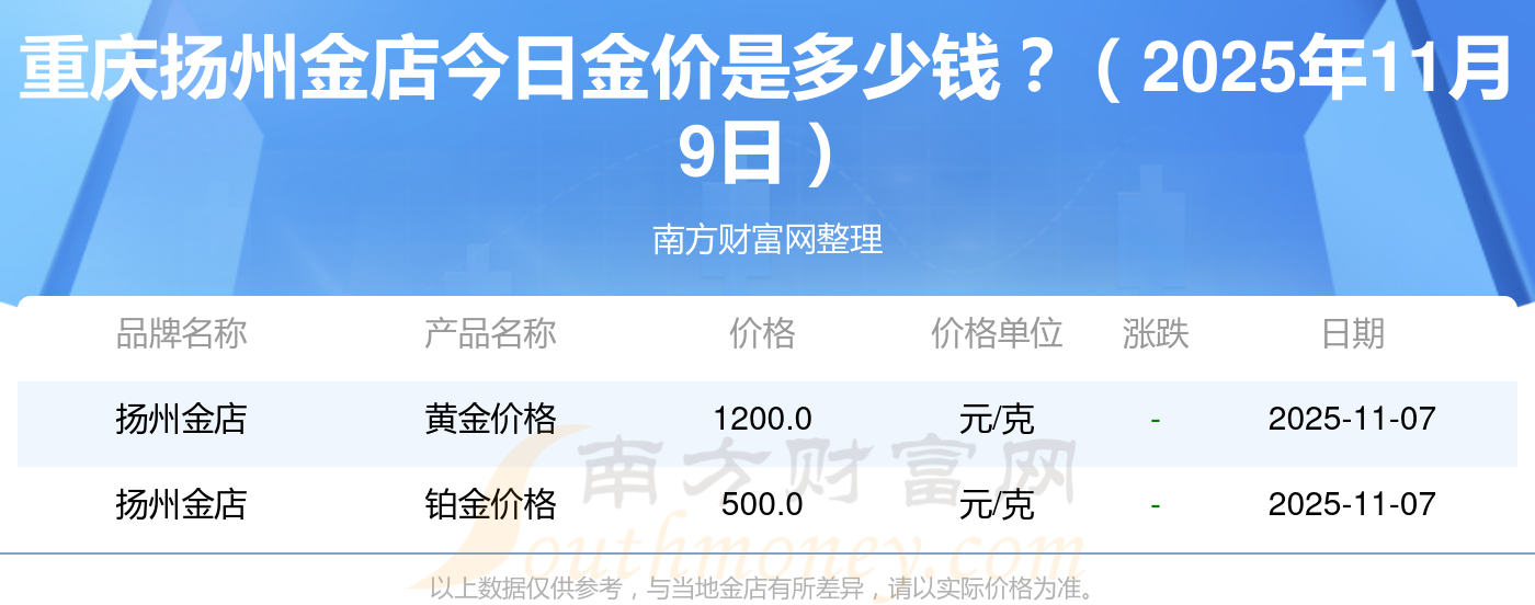 想了解此刻黃金價(jià)格,今天黃金一克的售價(jià)為多少?2025年11月9日重慶揚(yáng)州金店一克黃金的售價(jià)是多少:銀條價(jià)格11.4元/克,黃金價(jià)格1263.0元/克,鉑金價(jià)格560.0元/克,金條價(jià)格(內(nèi)地)1202.0元/克,金飾價(jià)格(內(nèi)地)1268.0元/克,黃金飾品(香港)44260.0,鉑金飾品(香港)13080.0,金條金價(jià)(香港)39960.0,投資金條1243.0元/克,工藝金條1258.0元/克,千足金首飾1248.0元/克。