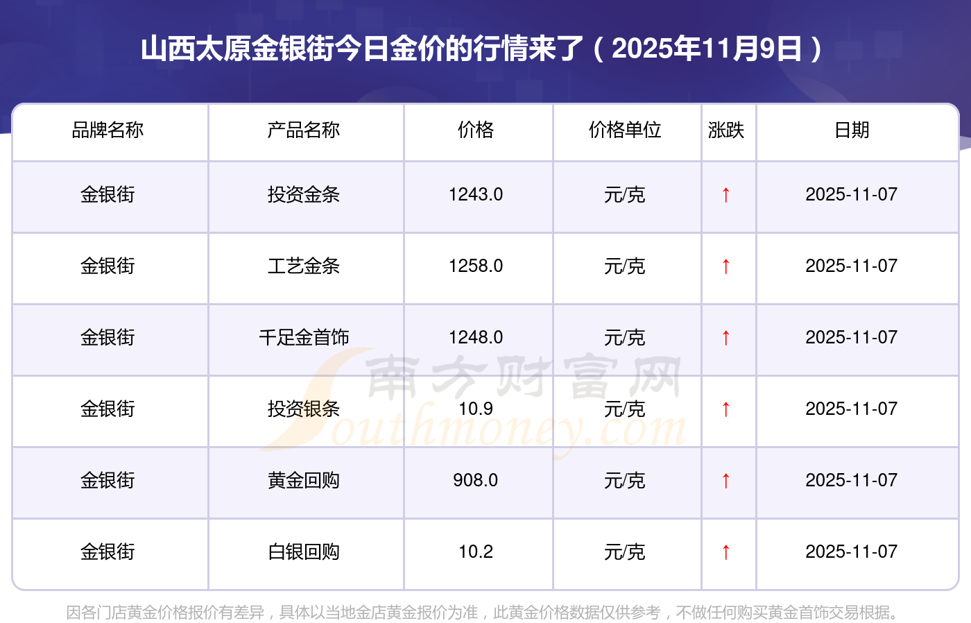 山西太原金銀街黃金價(jià)格表來(lái)了,現(xiàn)在山西太原金銀街黃金價(jià)格是多少錢(qián)1克?