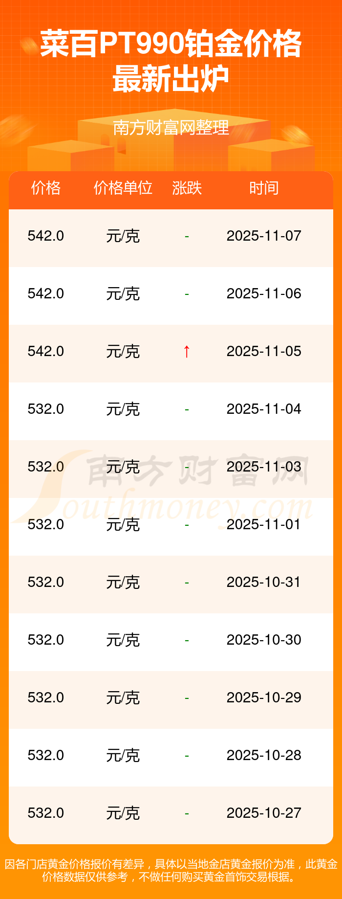 2025年11月9日菜百現在PT990鉑金價格每克多少錢_菜百PT990鉑金報價實時行情走勢圖,一起來看看吧!