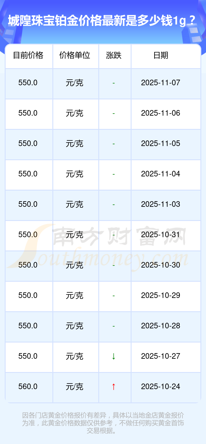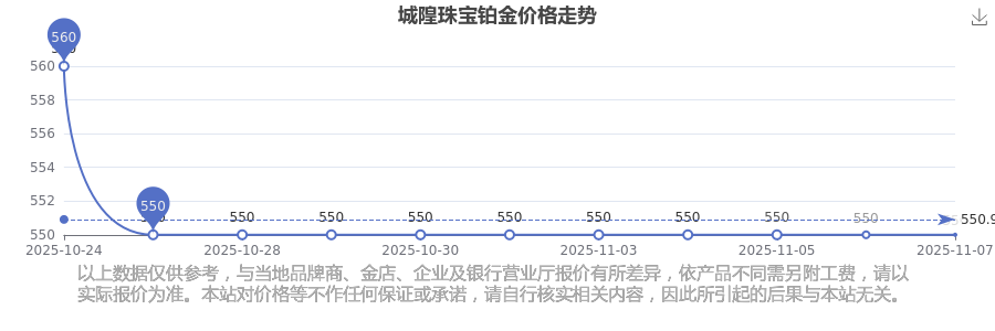 550.0元/克的價(jià)格,是城隍珠寶今日 鉑金價(jià)格的最新行情。