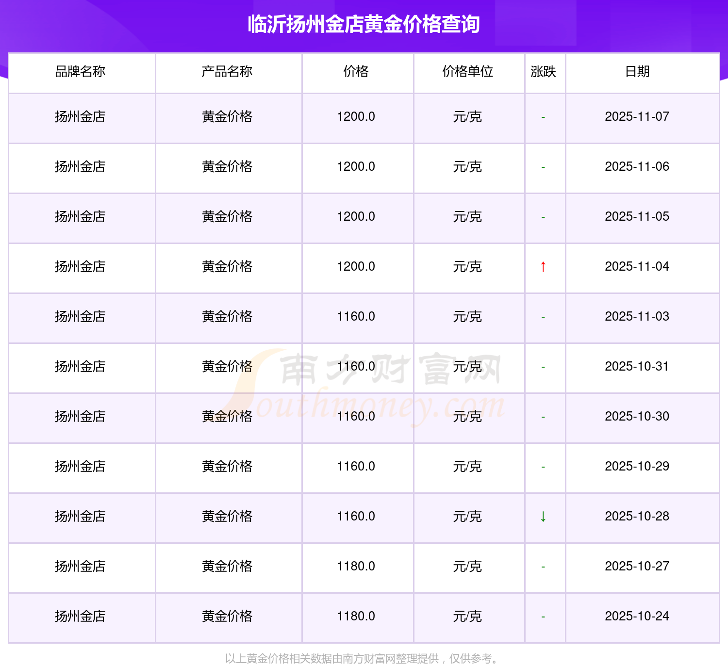 2025年11月9日臨沂揚(yáng)州金店黃金價格:1200.0元/克。