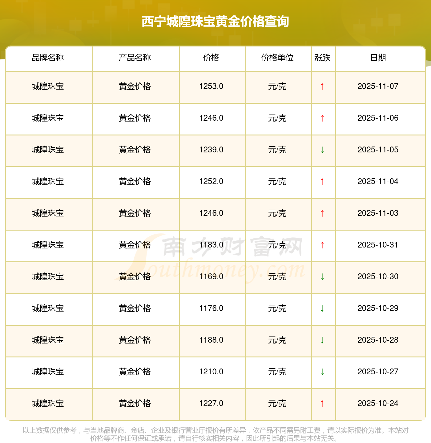 今日西寧城隍珠寶黃金價(jià)格為1253.0元/克。
