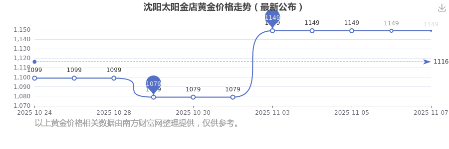 (2025年11月9日)沈陽(yáng)太陽(yáng)金店黃金價(jià)格現(xiàn)在為1149.0元/克。