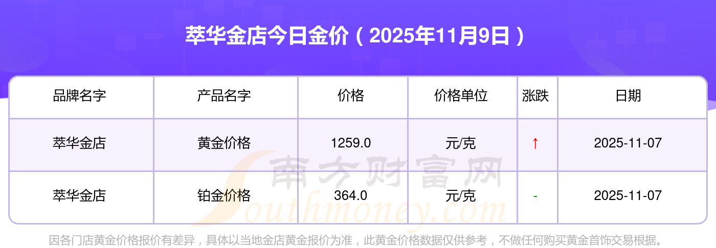 2025年11月9日寶泉錢幣、金蘭首飾、金蘭首飾、謝瑞麟、謝瑞麟、謝瑞麟、謝瑞麟、謝瑞麟、金銀街、金銀街、金銀街等各大金店品牌黃金價(jià)格最新價(jià)格如下:寶泉錢幣銀條價(jià)格11.4元/克,金蘭首飾黃金價(jià)格1263.0元/克,金蘭首飾鉑金價(jià)格560.0元/克,謝瑞麟金條價(jià)格(內(nèi)地)1202.0元/克,謝瑞麟金飾價(jià)格(內(nèi)地)1268.0元/克,謝瑞麟黃金飾品(香港)44260.0,謝瑞麟鉑金飾品(香港)13080.0,謝瑞麟金條金價(jià)(香港)39960.0,金銀街投資金條1243.0元/克,金銀街工藝金條1258.0元/克,金銀街千足金首飾1248.0元/克。