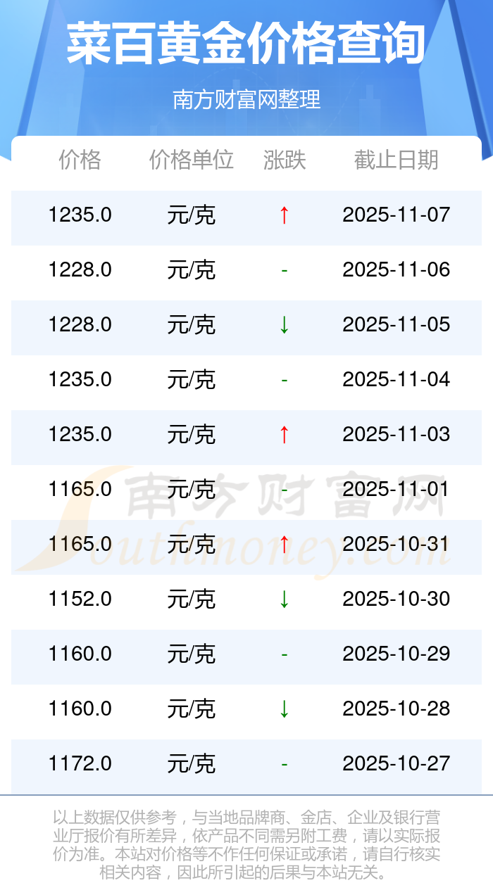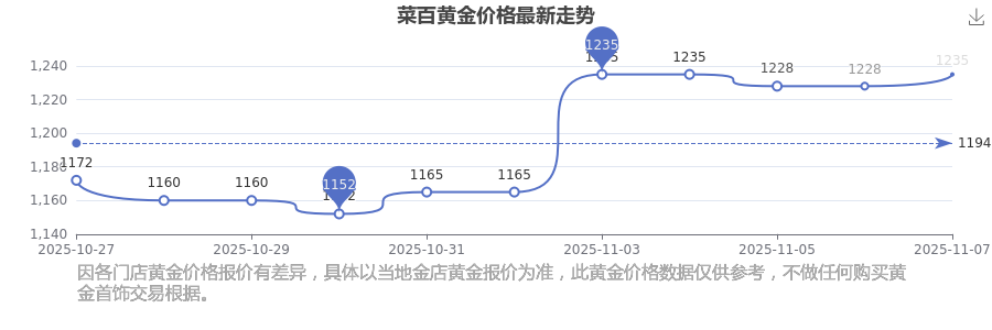想查詢今天黃金價(jià)格,此刻黃金一克的價(jià)格是多少呀?一般黃金每克的價(jià)格大概是多少呀?2025年11月9日菜百黃金價(jià)格是1235.0元/克。